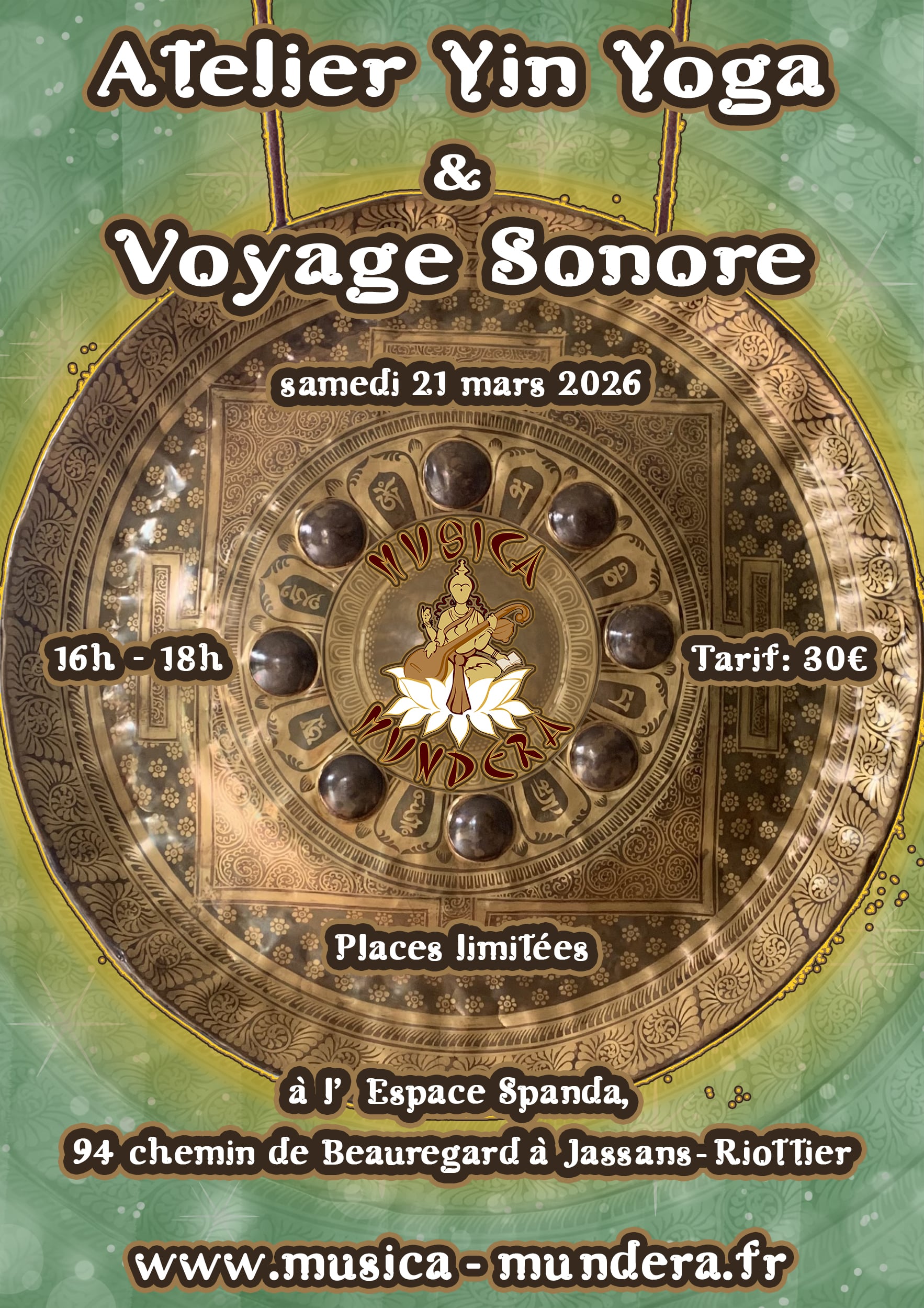-Samedi 21 mars 2026 de 16h à 18h : Atelier Yin Yoga & Voyage Sonore